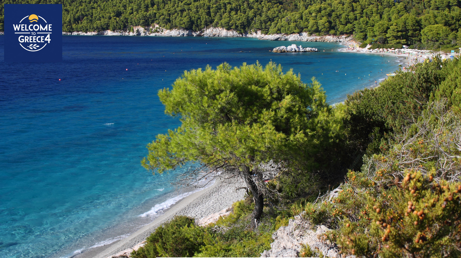 is famous for its lush pine forests, vibrant greenery, and crystal-clear waters. Even greener than nearby Skiathos, it gained worldwide fame as the filming location of Mamma Mia!, featuring the iconic chapel perched on a rock. The island perfectly combines natural beauty, traditional villages, and a relaxed, authentic Greek island vibe.