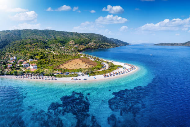 Evia, Greece's second-largest island, is a diverse and captivating destination that feels like a miniature mainland. It stretches over 180 km, offering a mix of rugged mountains, dense forests, and fertile plains. The island is famous for its thermal springs, particularly in Edipsos, which have been celebrated since ancient times for their healing properties. Its coastline is dotted with picturesque beaches, from hidden coves to long sandy stretches, ideal for both relaxation and water sports.