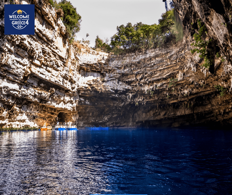 Melissani Cave: A subterranean lake where the roof has collapsed, allowing sunlight to illuminate the unbelievably blue water. You take a small boat inside.