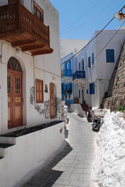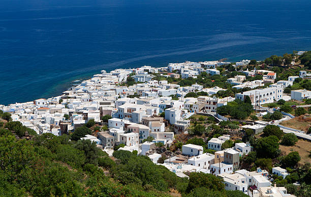 Leaving the crater, the island's villages offer a gentler, human-scale charm. Emporios, a near-deserted medieval settlement on the crater's edge, is a hauntingly beautiful ghost town of restored and crumbling black volcanic stone houses. Its silence is deafening, broken only by the wind and distant goat bells.