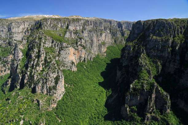 Adventure trails and viewpoints, like the Beloi viewpoint or Oxia plateau, provide panoramic vistas over the gorge, river valleys, and the Pindus mountain range beyond.